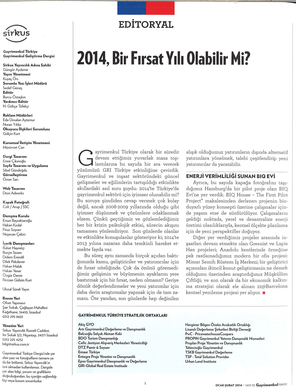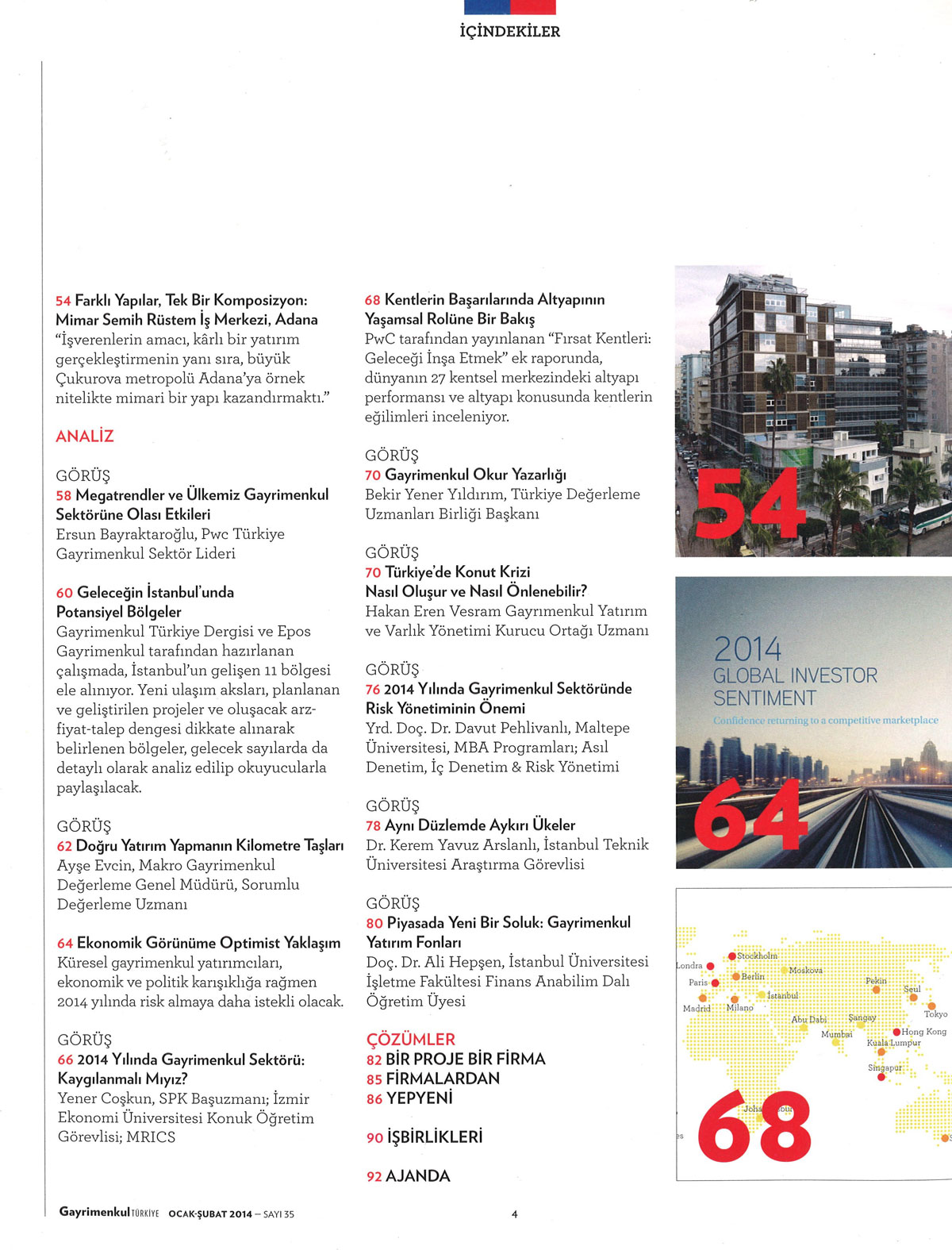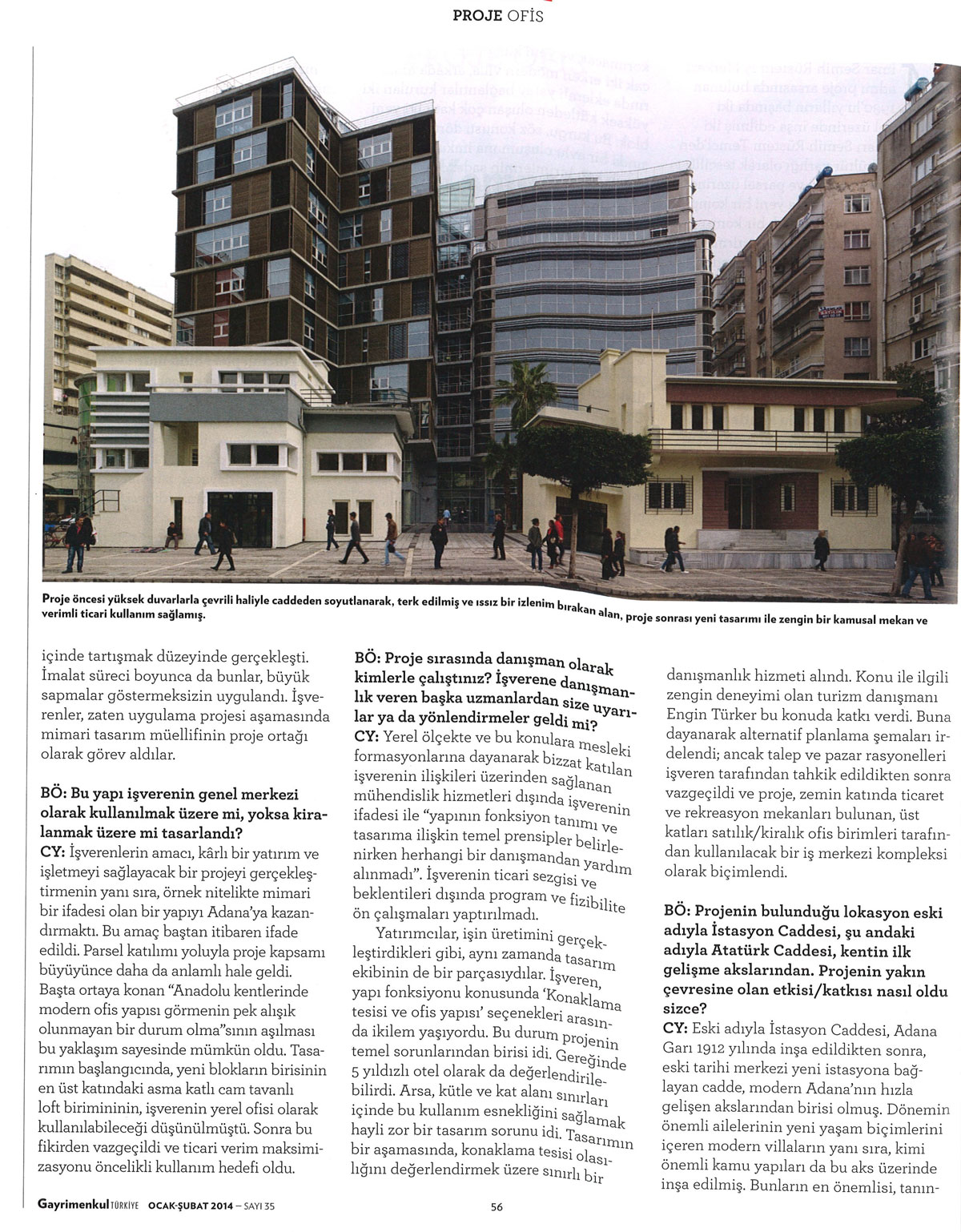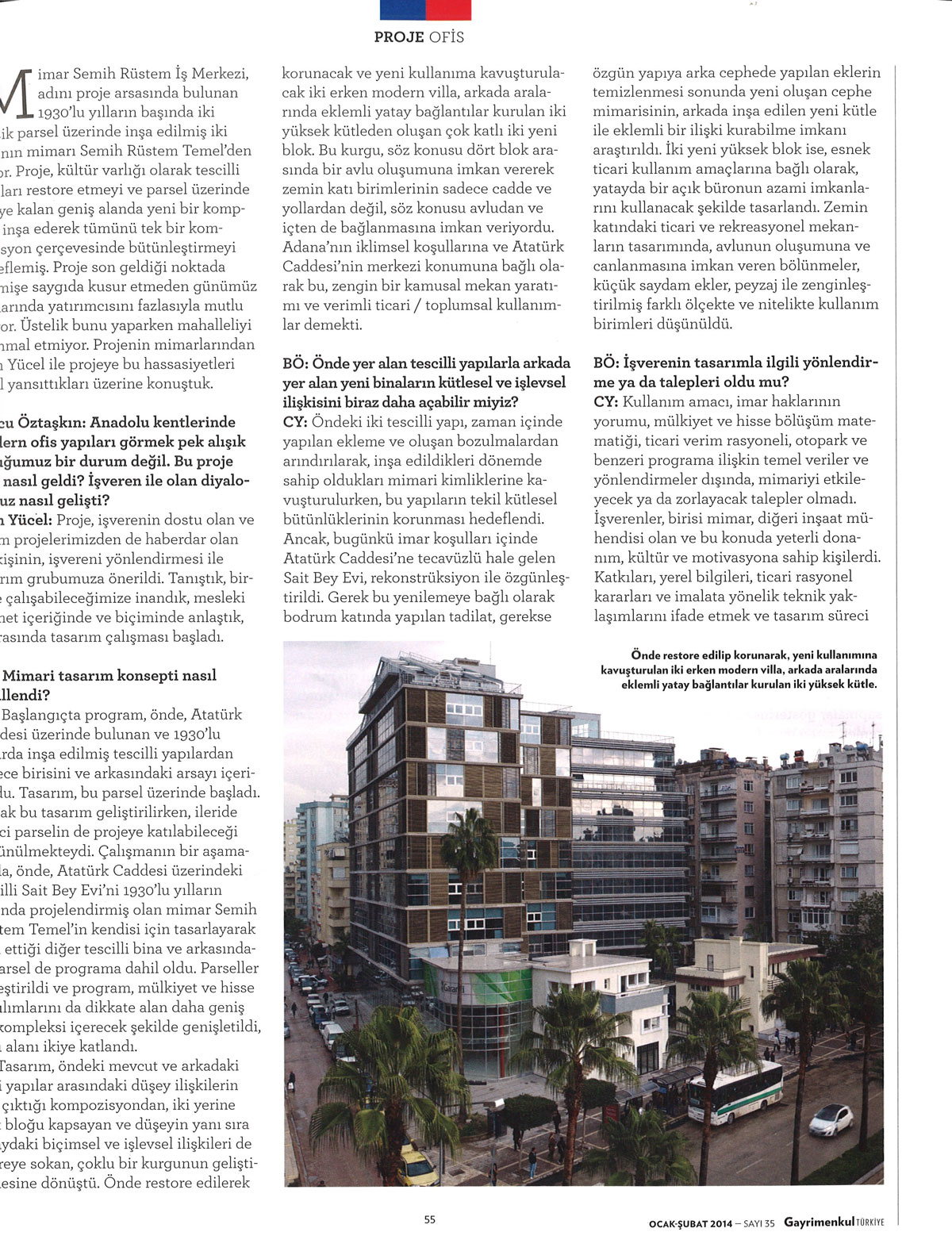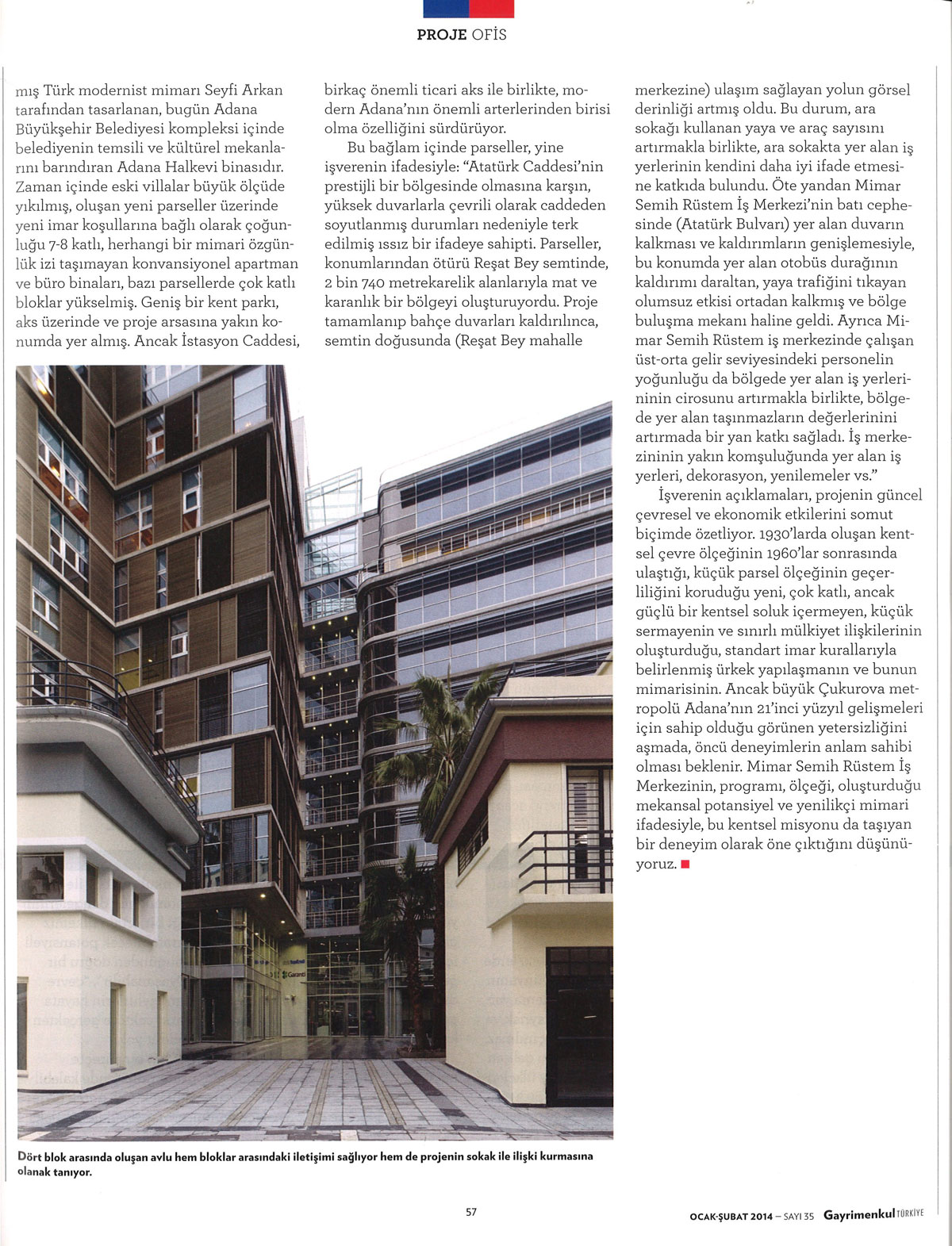 Gayrimenkul Türkiye Magazine, Mimar Semih Rüstem İş Merkezi, Seyhan, Adana, January-February 2014